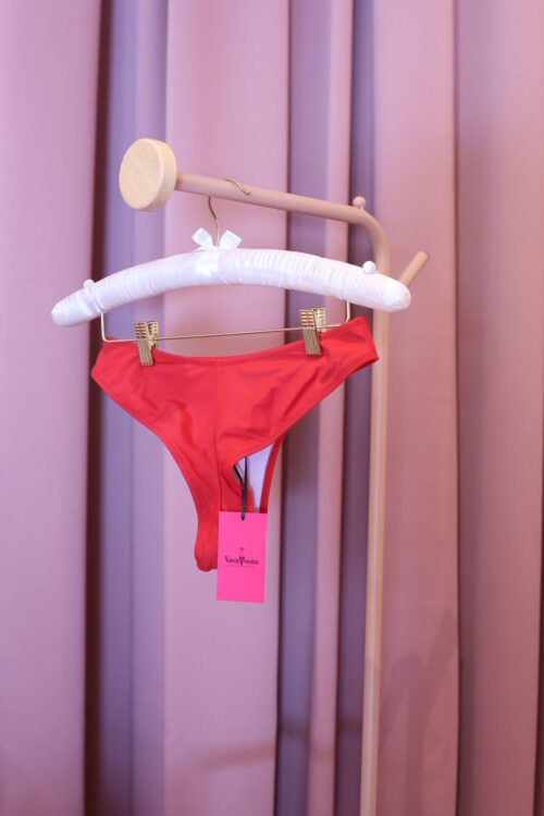 La fantasia con conchiglie bianche su sfondo rosso aragosta richiama il fascino del mare, perfetta per completare il look estivo con un dettaglio fresco e raffinato.